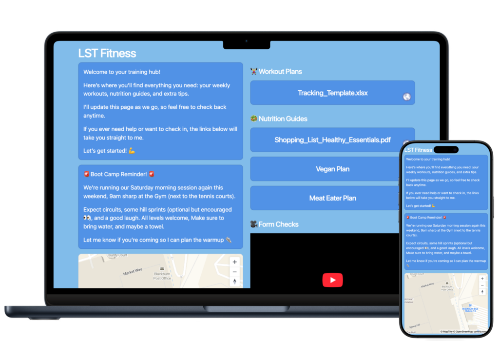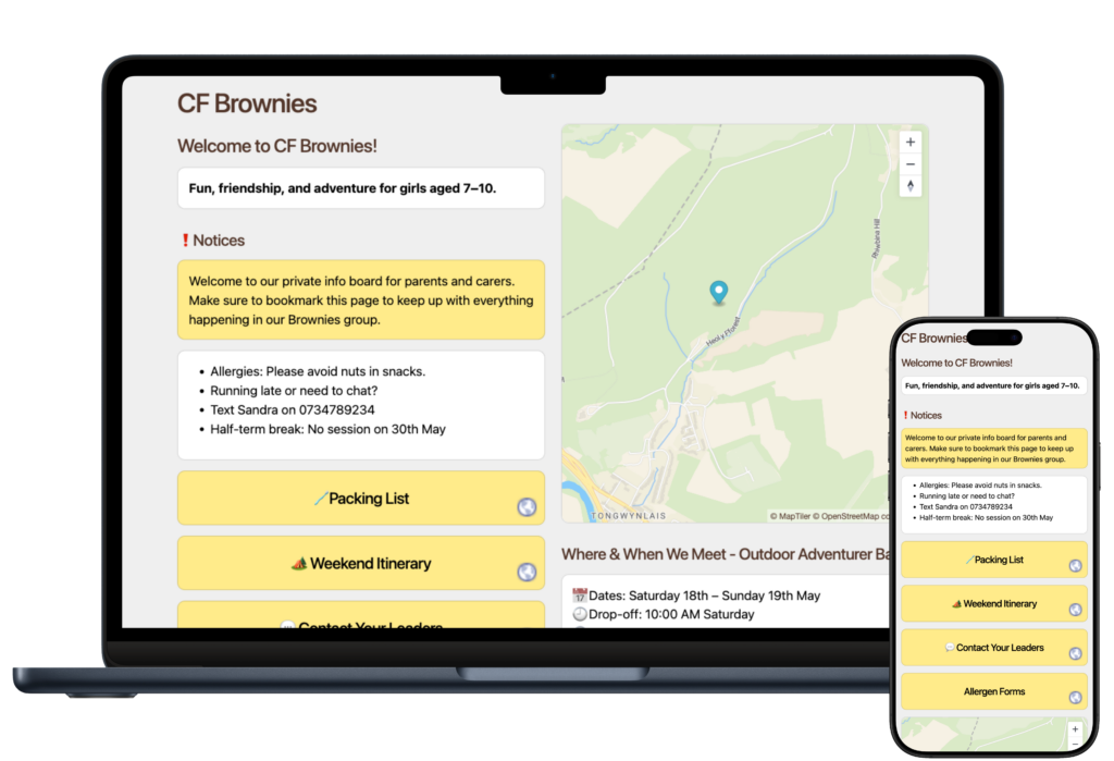 Create a private website for your group updates. Designed for leaders, coaches and educators.