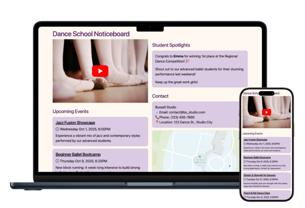 Need your dance crew to practise the new choreography? Embed YouTube videos and make sure everyone is in step.